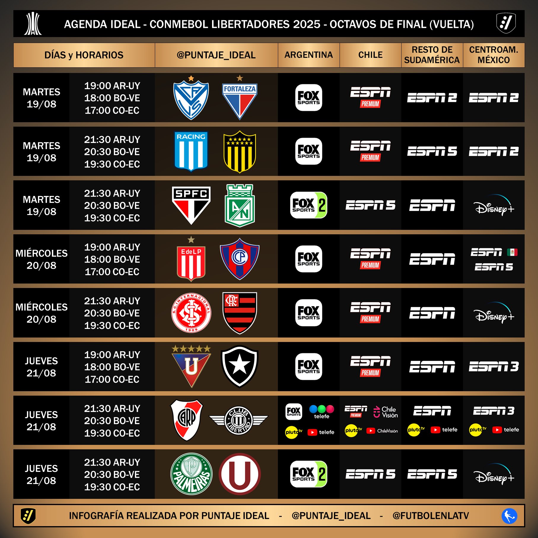 El miércoles sigue la actividad en la Copa Libertadores 2025. A primer turno, desde las 19hs, Estudiantes es local de Cerro Porteño. Ganó el Pincha 1 a 0 en la ida y busca sellar la clasificación en La Plata. El partido se podrá seguir en vivo por Fox Sports y Disney Plus.